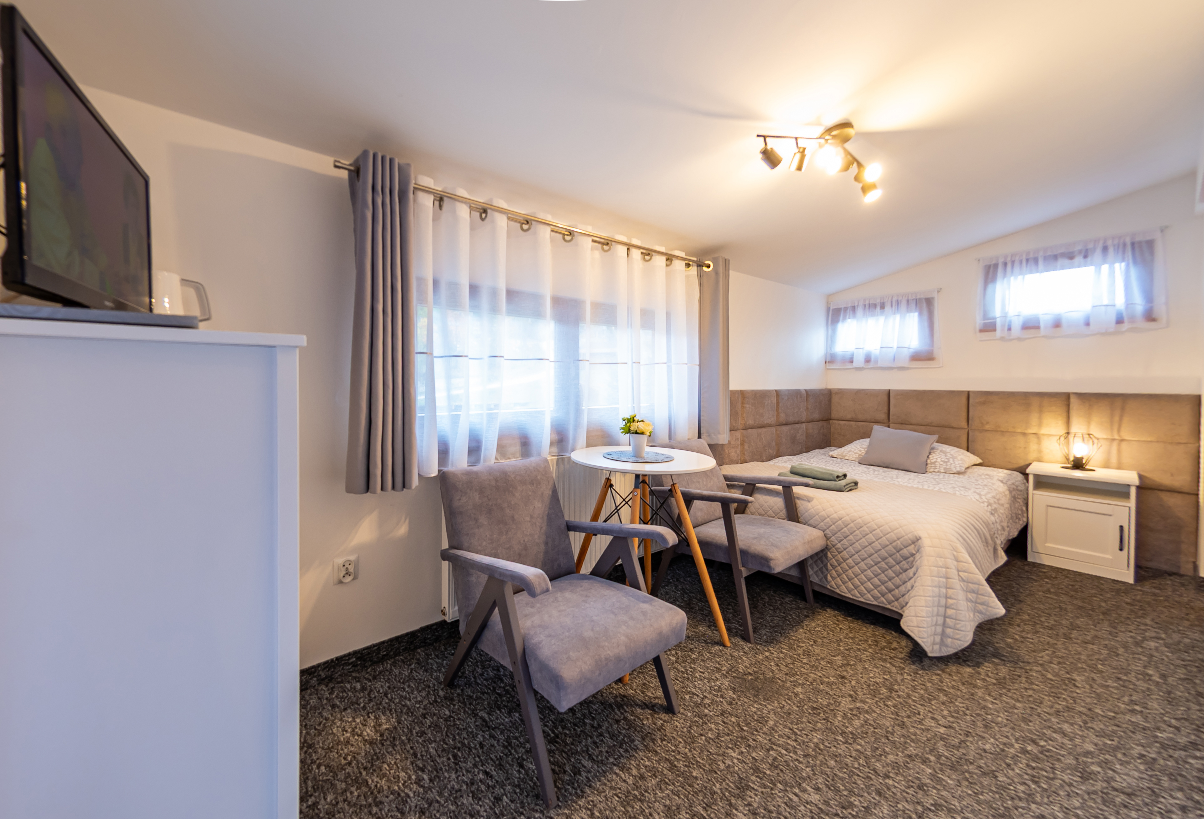 - Wygodne łóżka, telewizor, Wi-Fi.