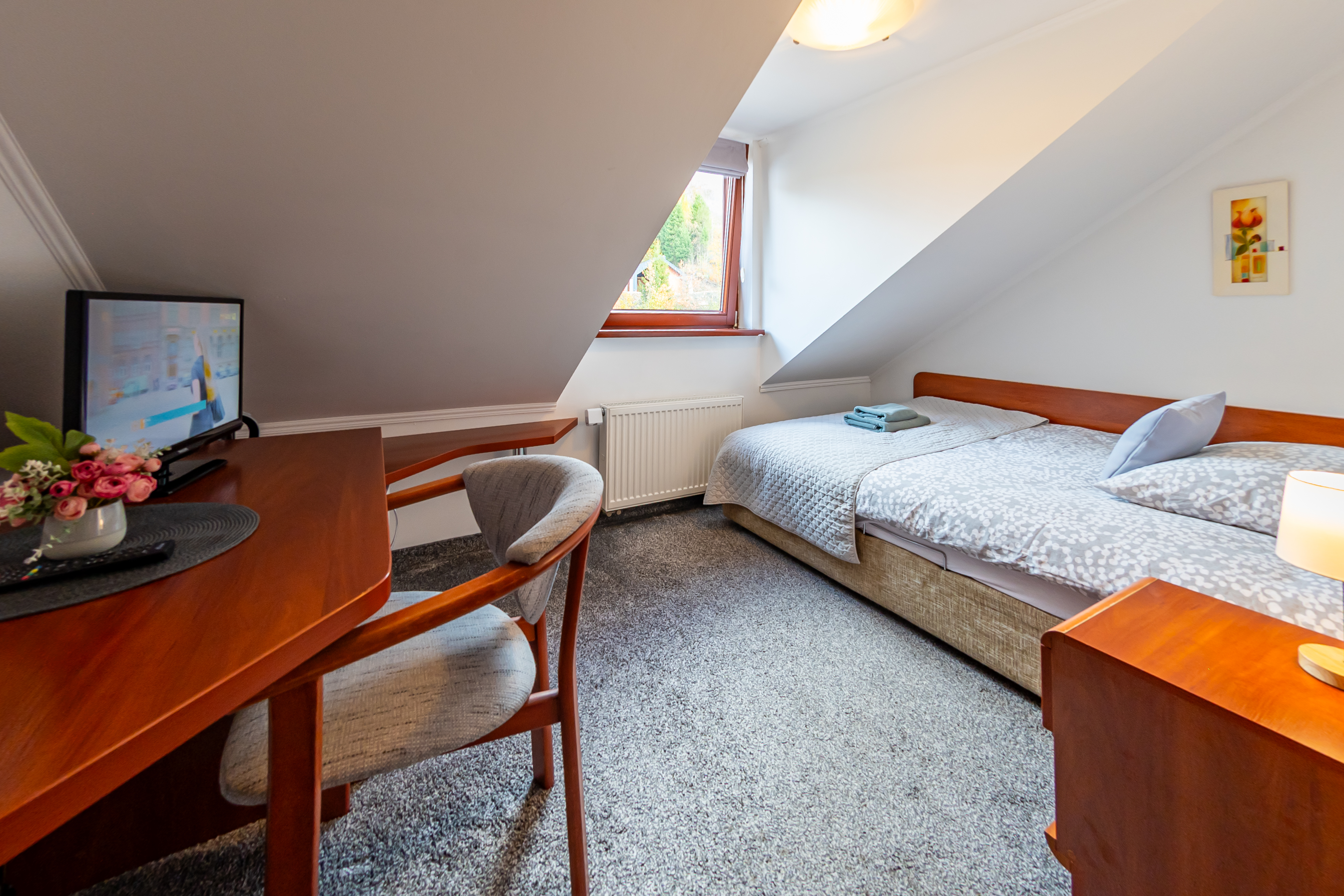 Pokoje 1 osobowe cechują się nowoczesnym wystrojem i komfortowym wyposażeniem. Idealny dla poszukiwaczy górskich przygód.